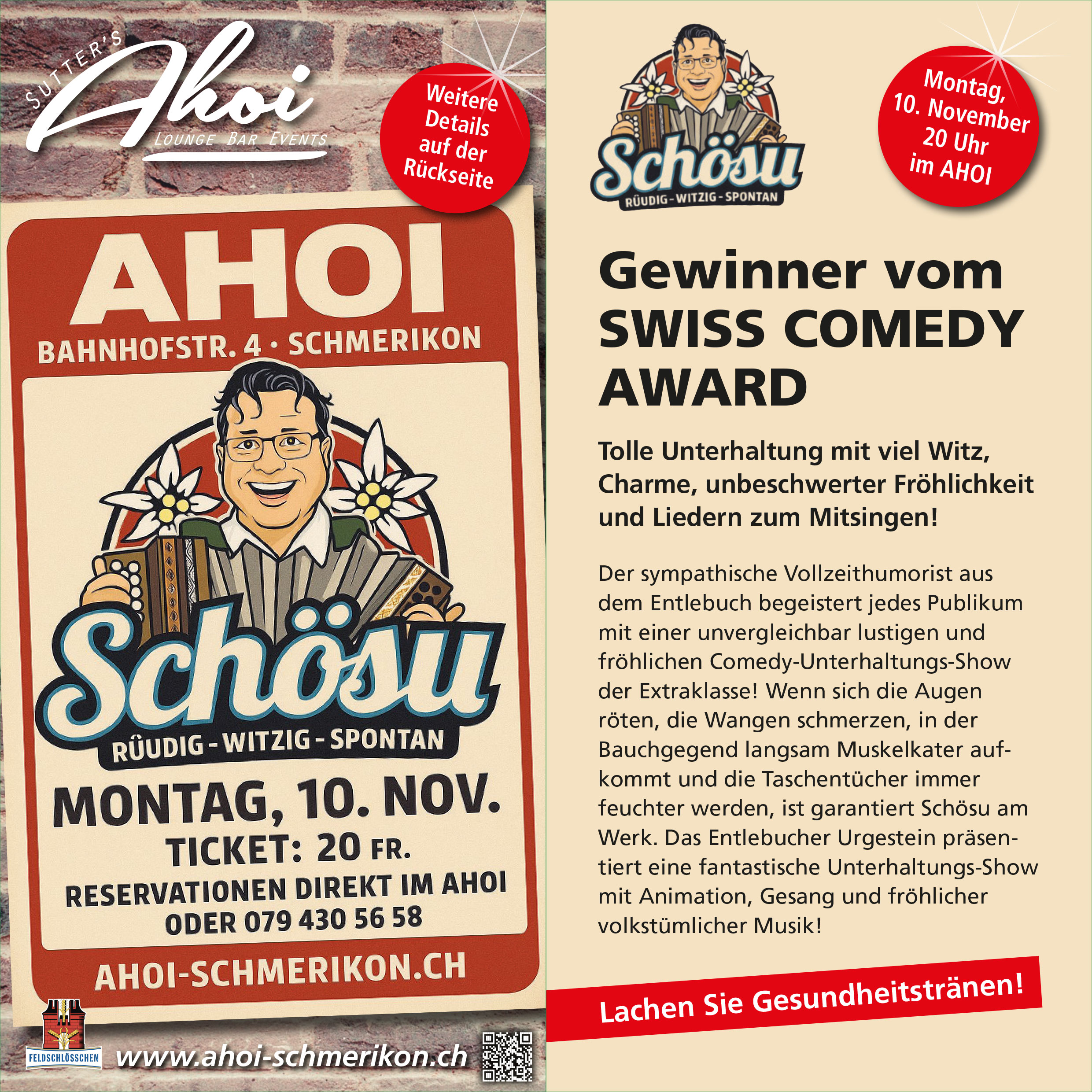 Jeder war voll und ganz mitgerissen…einschliesslich ich. Du hast innert Minuten alle Leute zum Mitmachen, Singen, Klatschen und natürlich lachen gebracht. 45 Minuten schonungslose Unterhaltung. Alle Achtung. Eine Person schaffte es ohne technischen Firlefanz alle Besucher zu Begeistern.